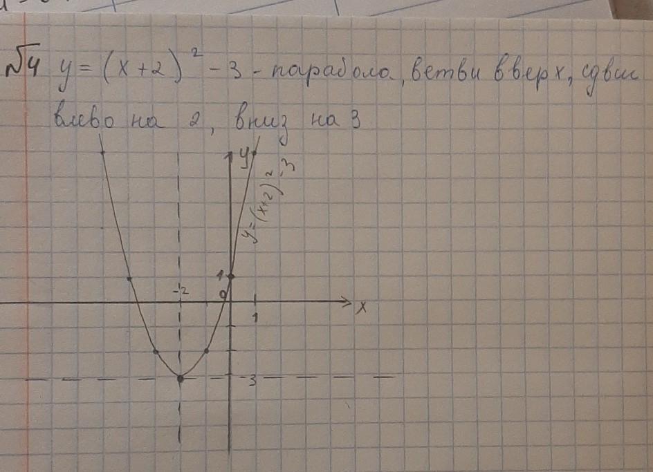 парабола, ветви вверх, сдвиг влево на 2, вниз на 3.