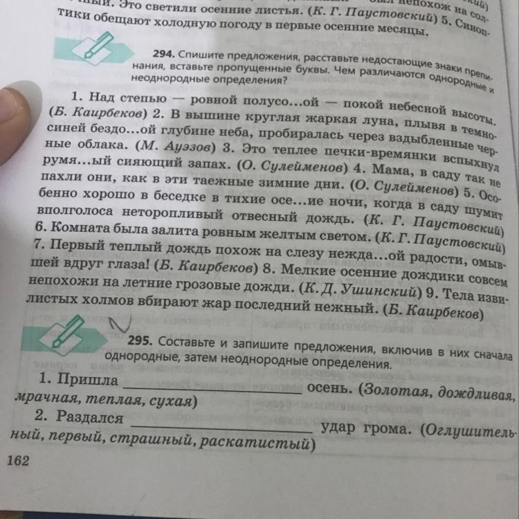 Составьте и запишите предложения включив в них сначала однородные затем неоднородные определения