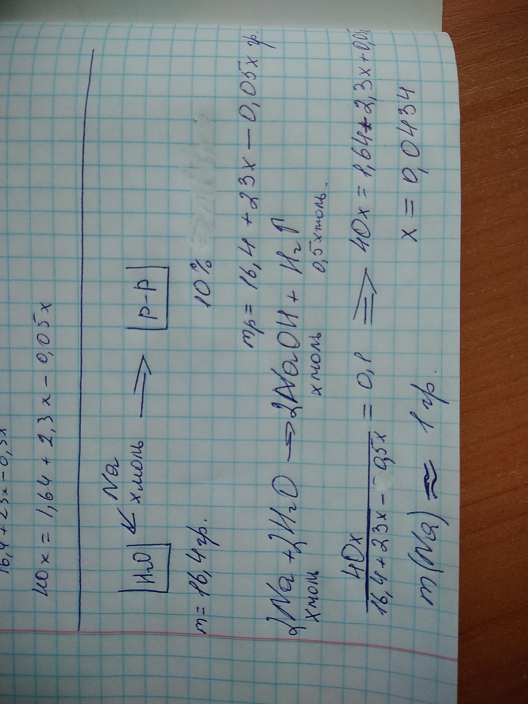 Сколько грамм натрия нужно растворить в 16,4 г воды, чтобы получить раствор с массовой долей гидроксида натрия 10%?