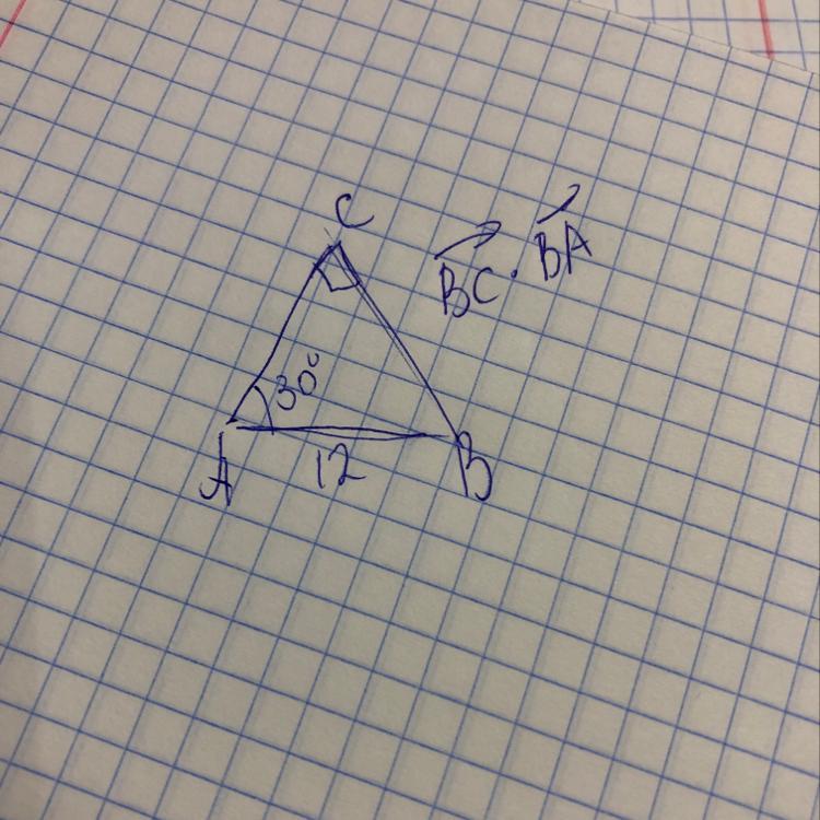 →ВС·→ВА=|→BC| ·|→BA|· cos∠ABC=6 · 12· cos 60°= 72 · (1:2) =36