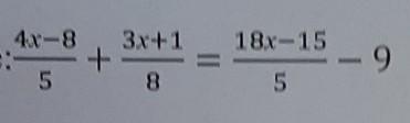 8(4x - 8) + 5(3x + 1) = 8(18x - 15) - 360 \\ 32x - 64 + 15x + 5 = 144x - 120 - 360 \\ 47x - 59 = 144x - 480 \\ 47x - 144x =  - 480 + 59 \\  - 97x =  - 421 \\ x =  \frac{ - 421}{ - 97}  \\ x = 4 \frac{33}{97}