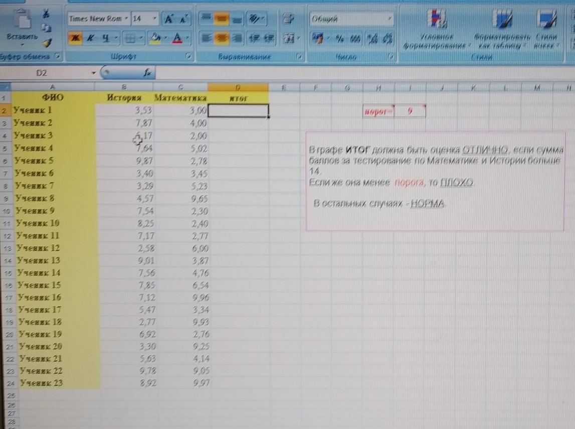 =ЕСЛИ(B2+C2>14;"Отлично";ЕСЛИ($I$2>B2+C2;"Плохо";"Норма"))