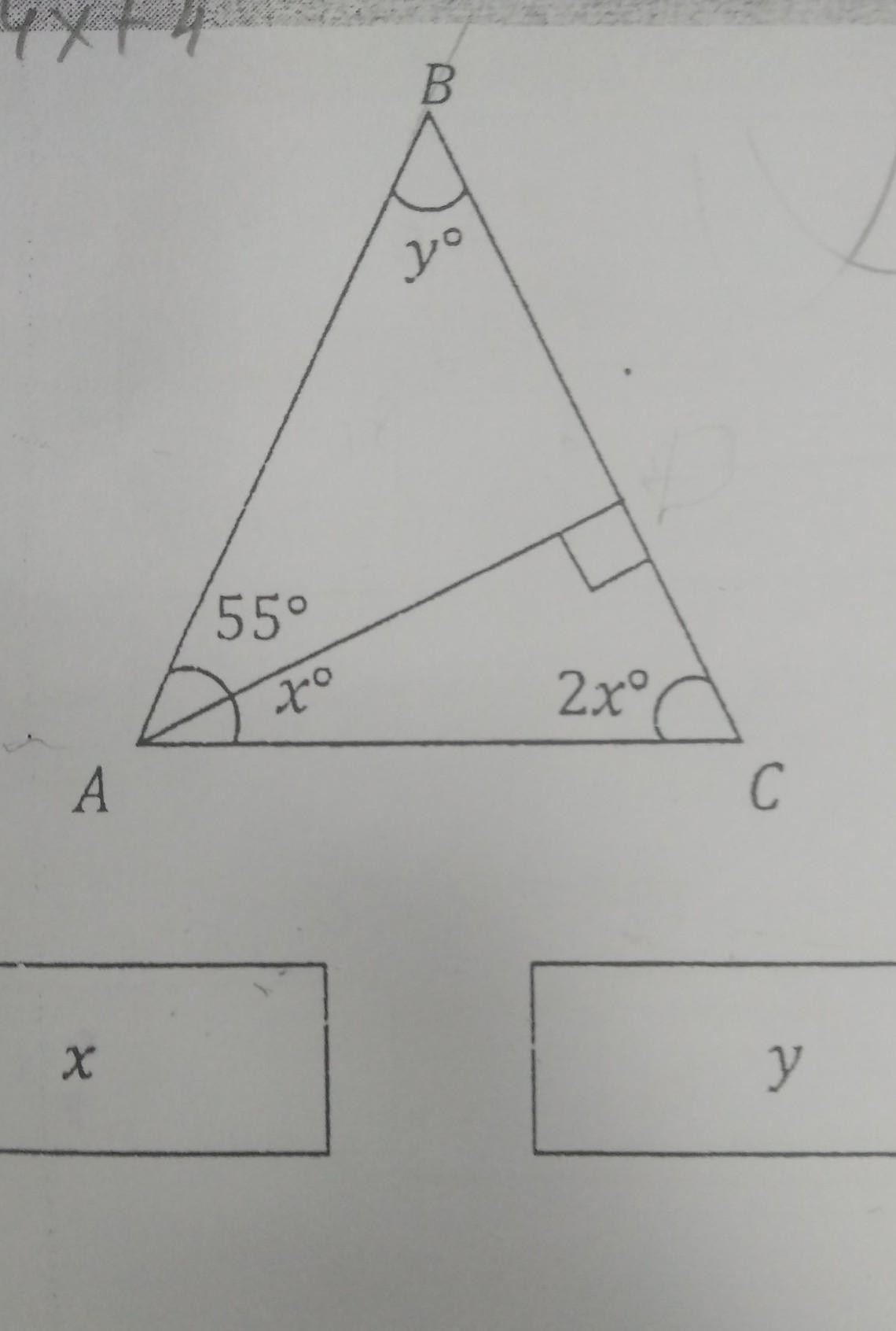 y=35 так как сумма углов тругольника всегда 180 а третий угол равен 90 так как он равен углу напротив его и получаем уравнение
