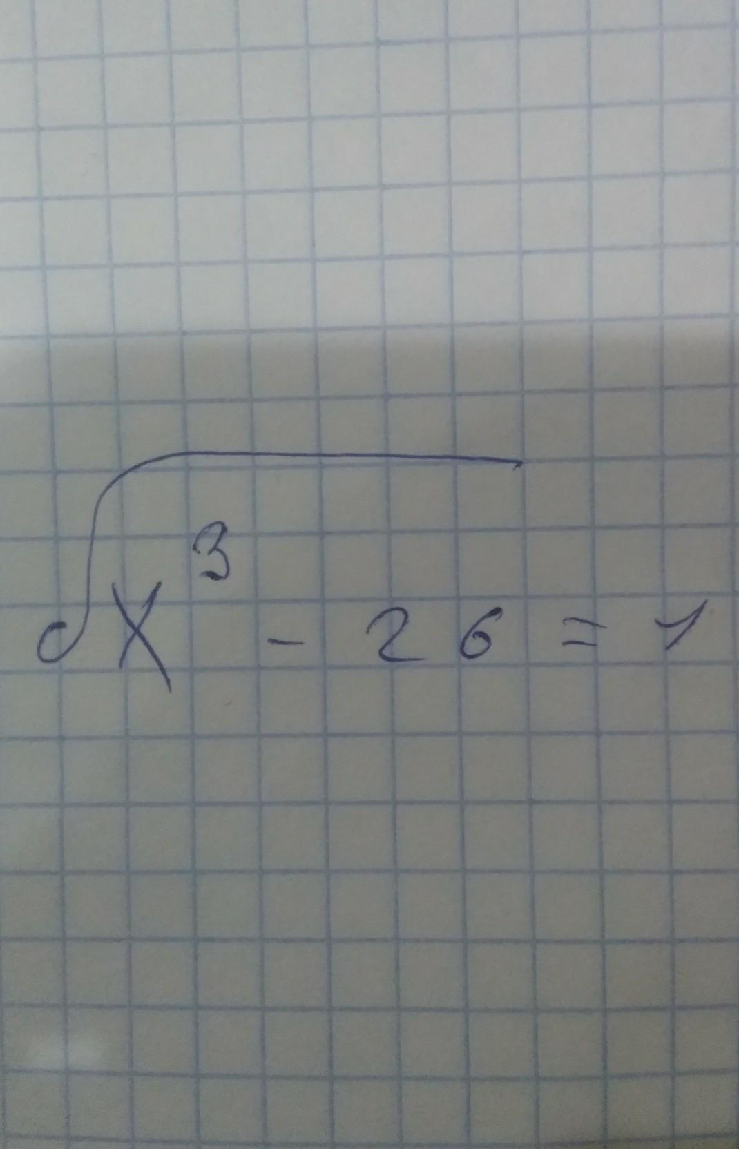 \sqrt{x^{3} - 26 } =1\\ x^{3} -26 = 1\\ x^{3}  = 27\\x = 3