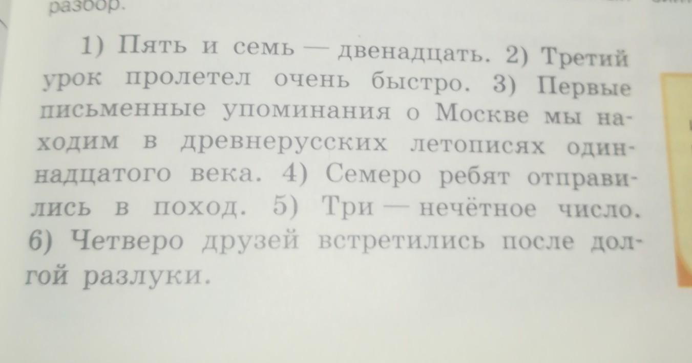 Пять, семь, двенадцать, третий, первые, одиннадцатого, семеро, три, четверо
