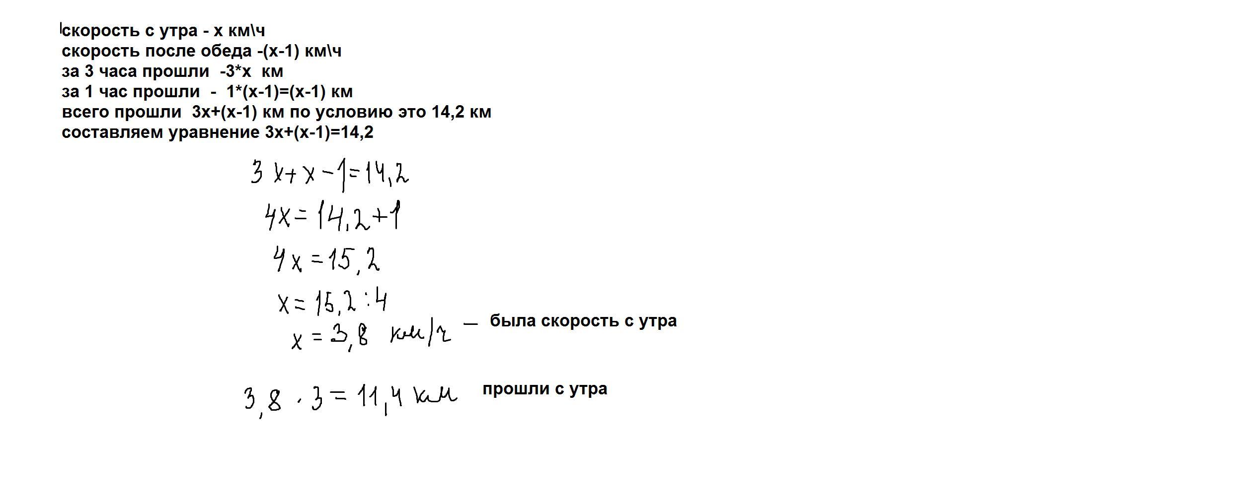 экскурсанты утром прошли 11,4 км со скоростью 3,8 км\ч