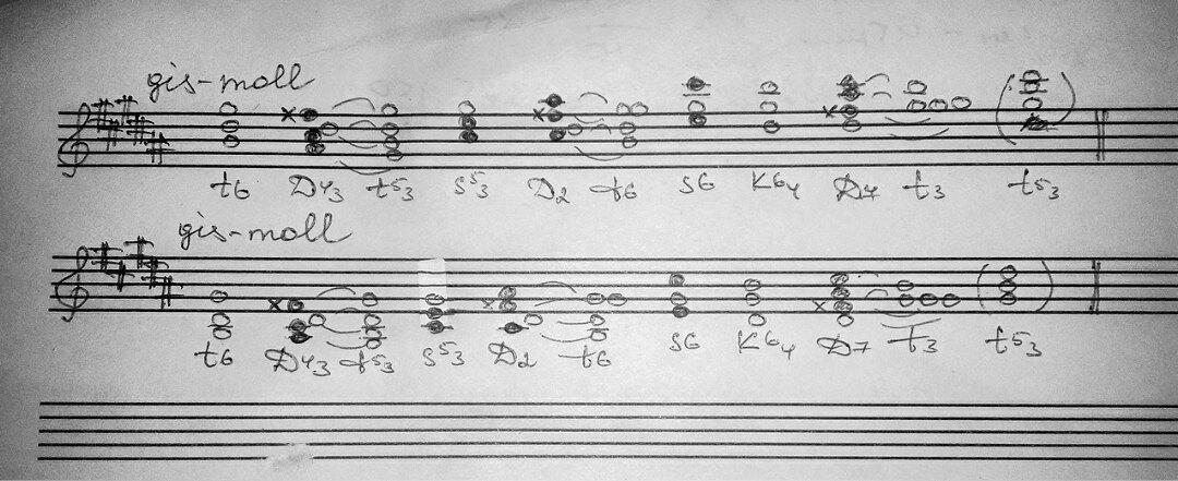 На другой строке добавила те же построения, но на октаву ниже (для удобного голосоведения)