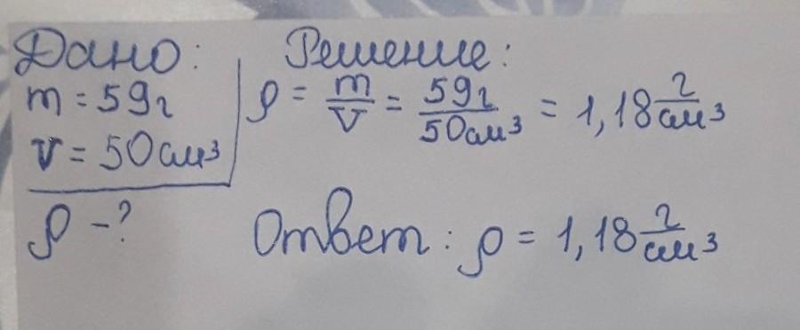 Картофель имеет массу 59 г , объём , которого 50см³.