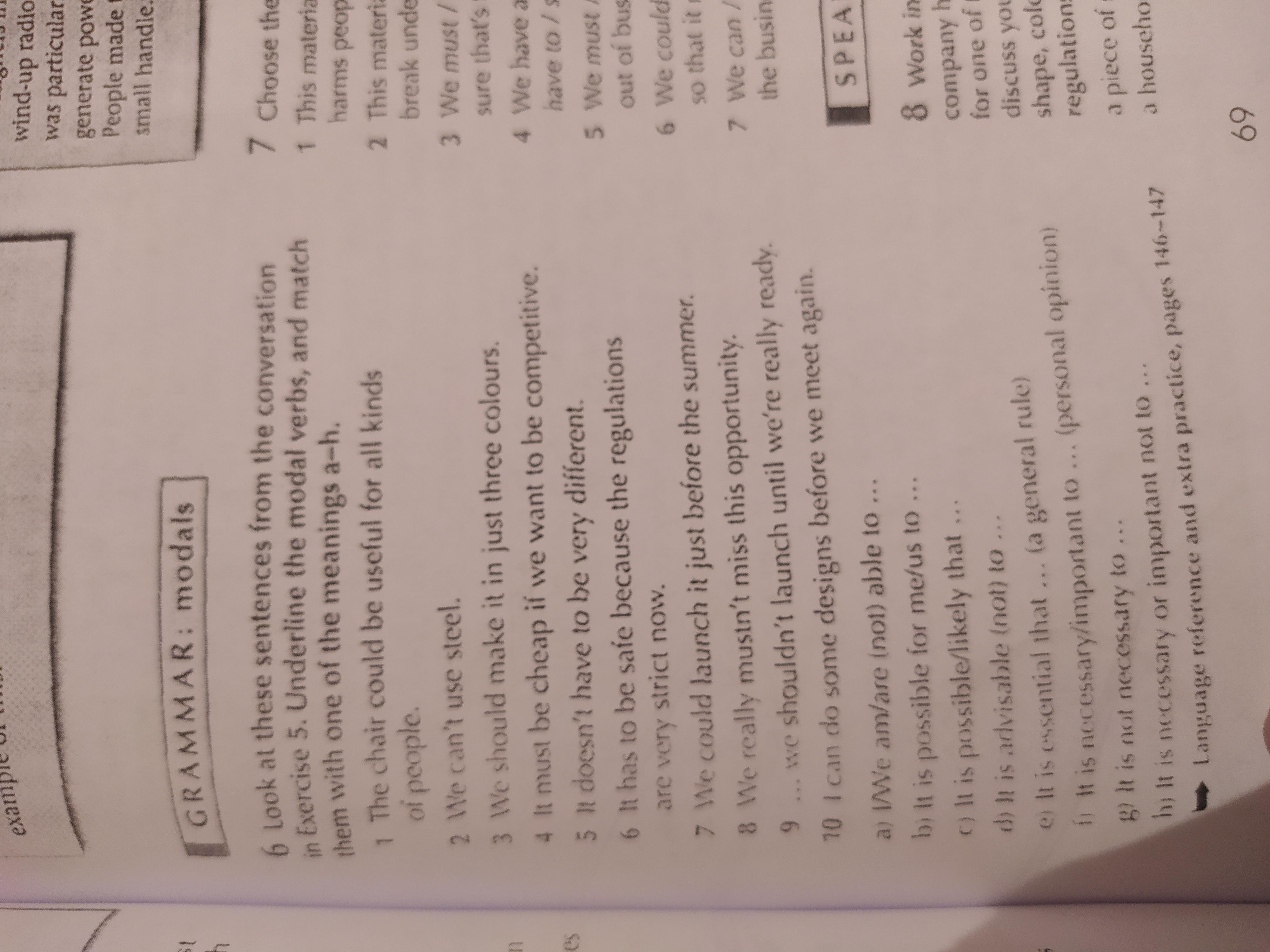 6 Look at these sentences from the conversation in Exercise 5. Underline the modal verbs, and match them with one of the meanings a-h.