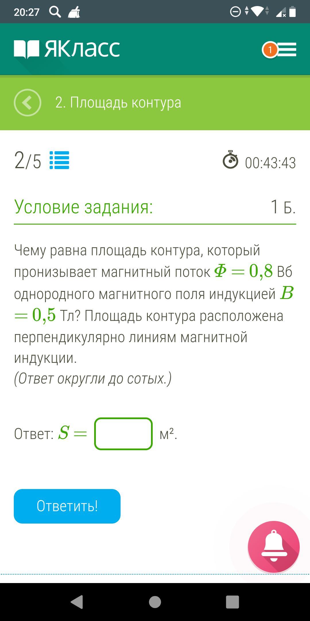 тогда S=Ф/B=1.6 м'2