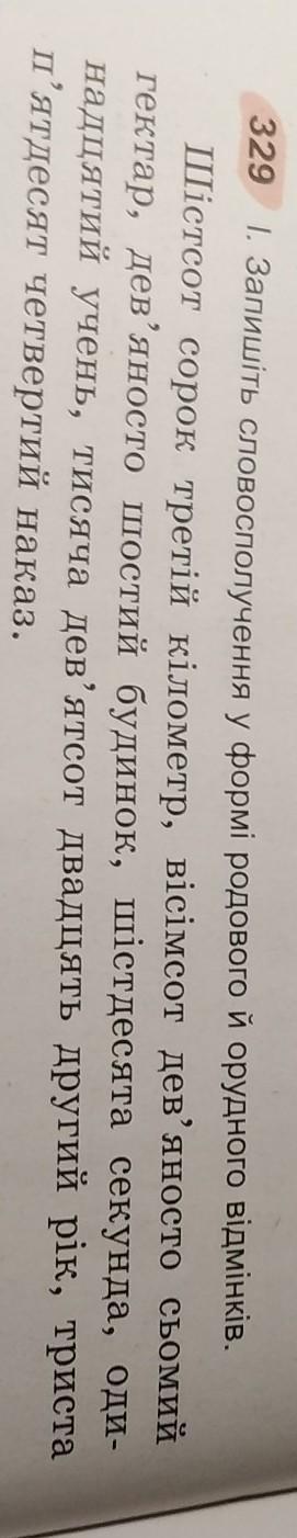 Ответ: шістсот сорока третього кілометра, шістсот сорока третім кілометром; вісімсот дев'яносто сьомого гектара, вісімсот дев'яносто сьомим гектаром; дев'яносто шостого будинку, дев'яносто шостим будинком; шістдесятої секунди, шістдесятою секундою; одинадцятого учня, одинадцятим учнем; тисяча дев'ятсот двадцять другого року, тисячу дев'ятсот двадцять другим роком; триста п'ятдесят четвертого наказу, триста п'ятдесят четвертим наказом