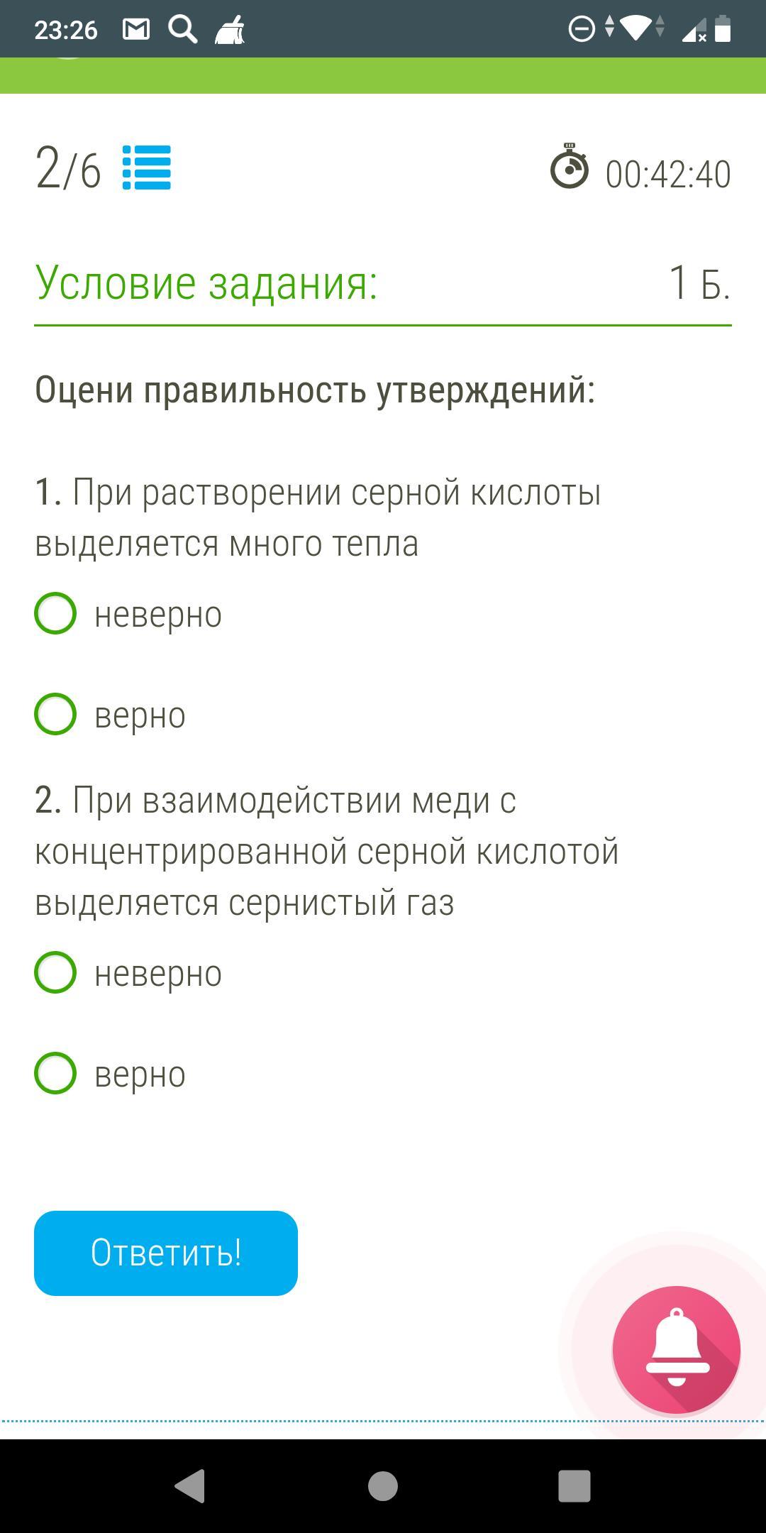2. Неверно, так как при взаимодействии меди с серной кислотой выделяется зернистый газ, а не сернистый.
