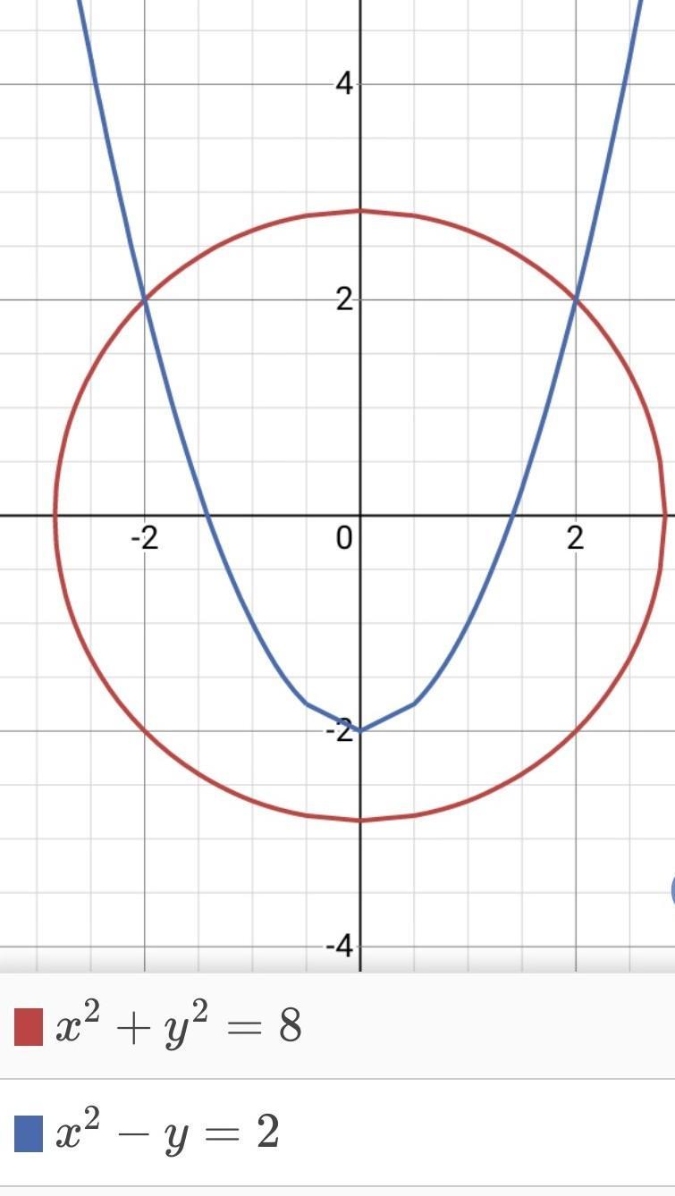 Решением системы будут точки пересечения графиков функции 1го и 2го уравнений. См. рисунок.