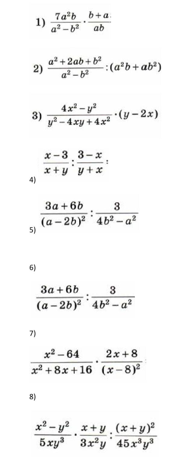 Выполните действия с алгебраическими дробями. ДАМ 100 БАЛЛОВ!