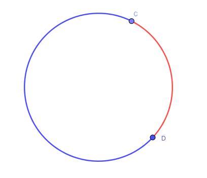 Отметить на произвольной окружности точки C и D . Разными цветами выделить две образовавшиеся дуги .