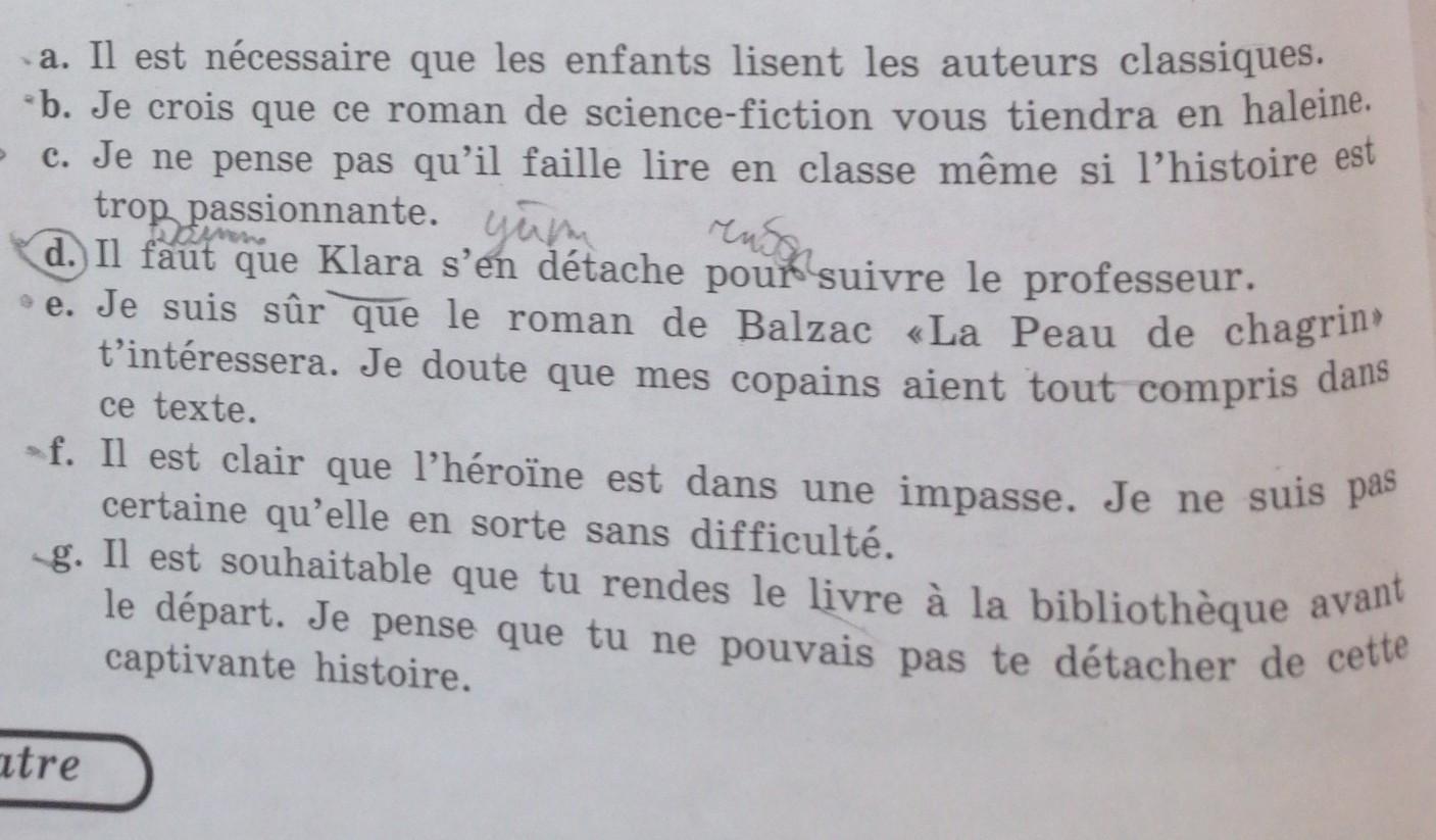 a, c, d, e (второе предложение), f (второе предложение), g (первое предложение)
