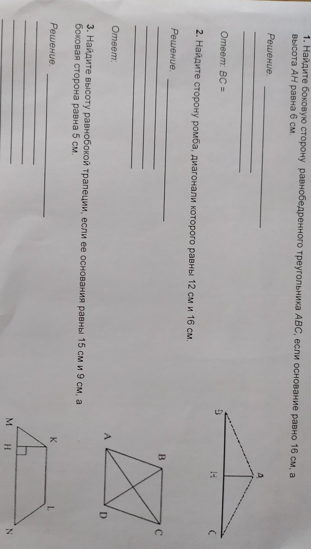 Δ MKH, KH²=MK²-MH², KH²= 5²-3²= 25-9=16, KH=√16=4см