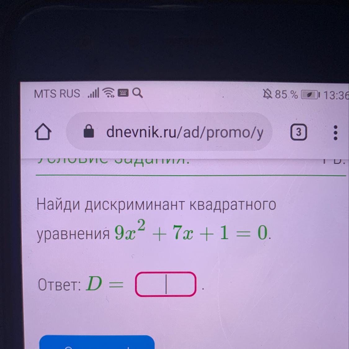 D=b²-4×a×c=7²-4×9×1=49-36=13