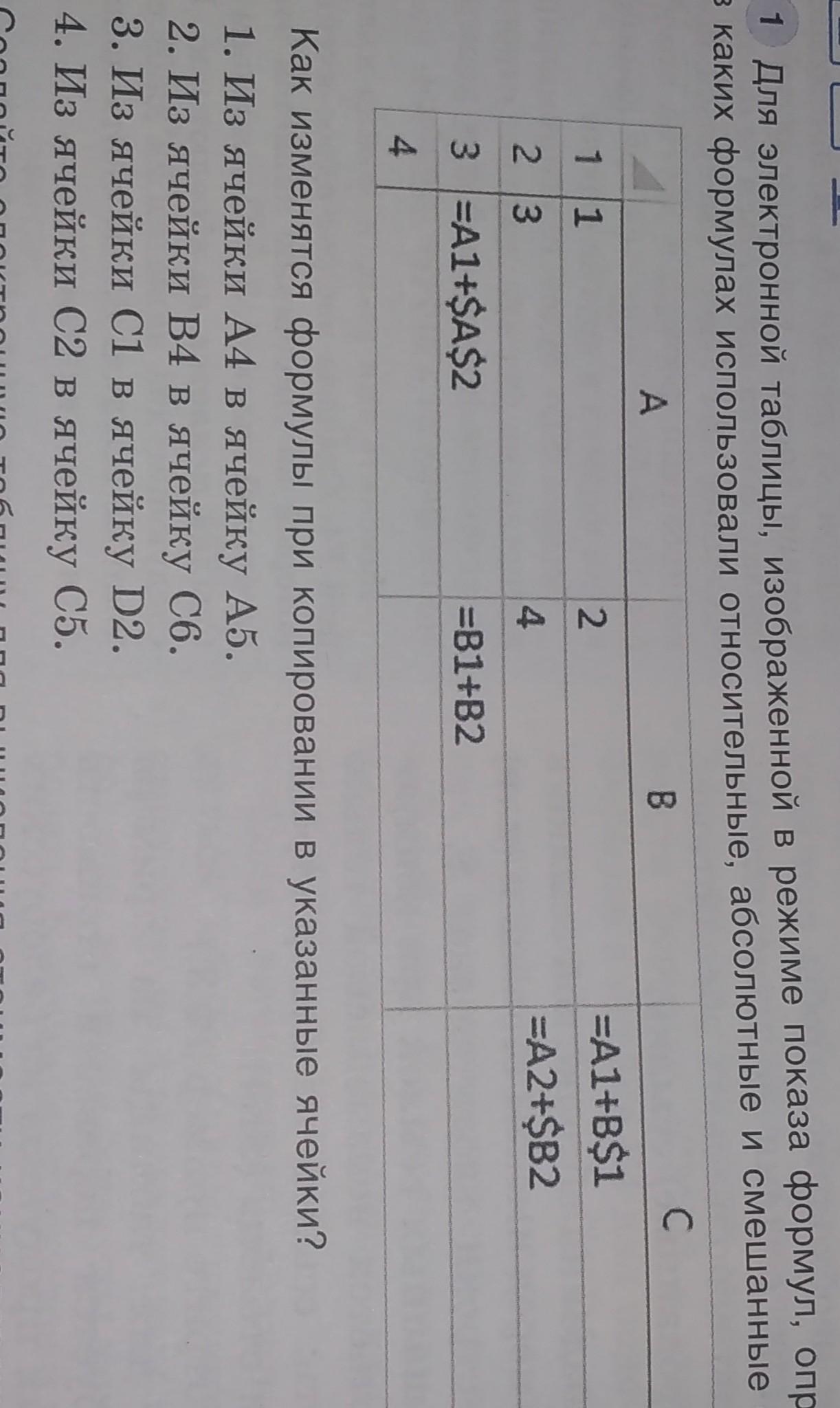 1) Абсолютные ссылки имеют вид $A$1 //Закрепляется столбец и строку.
