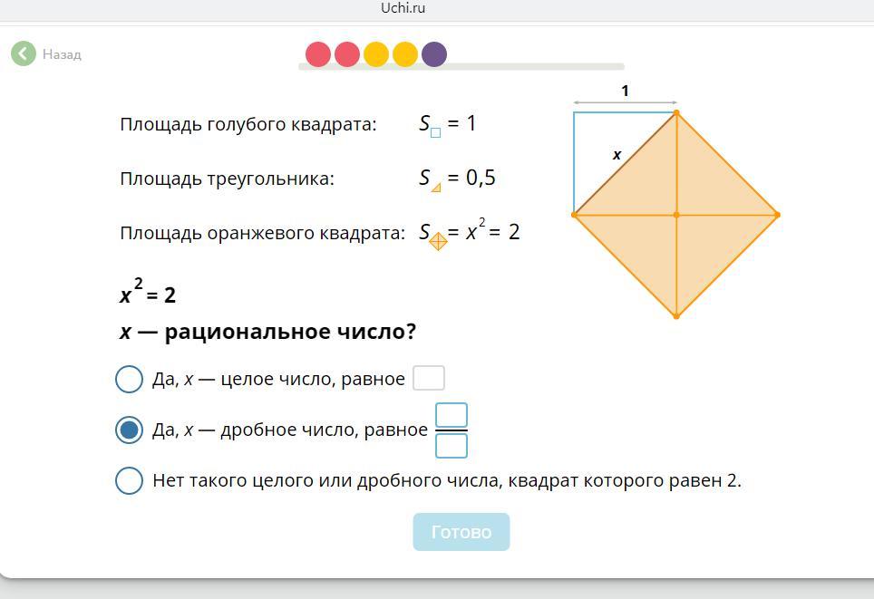 Правильный ответ -3 "нет такого целого или дробного числа квадрат которого равен 2"