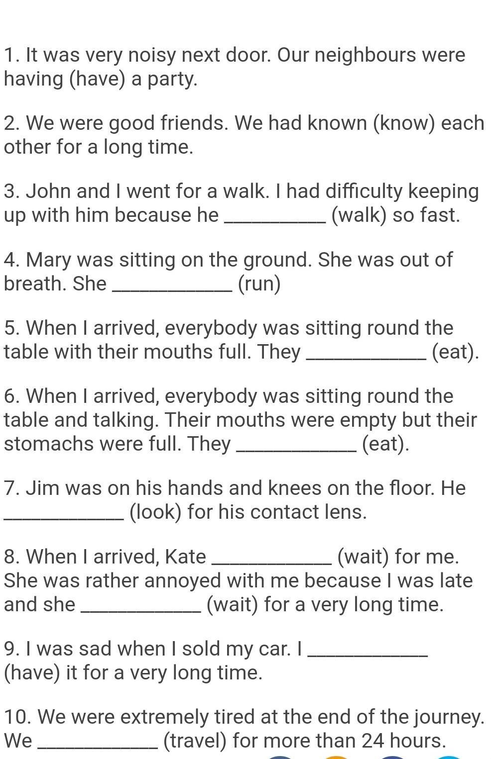 put the verbs into the most suitable form past continuous past perfect or past perfect continuous