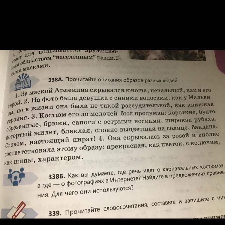 Как вы думаете,где речь идёт о карнавальных костюмах а где—о фотографиях в интернете ?Найдите в предложениях сравнения.Для чего они используются?