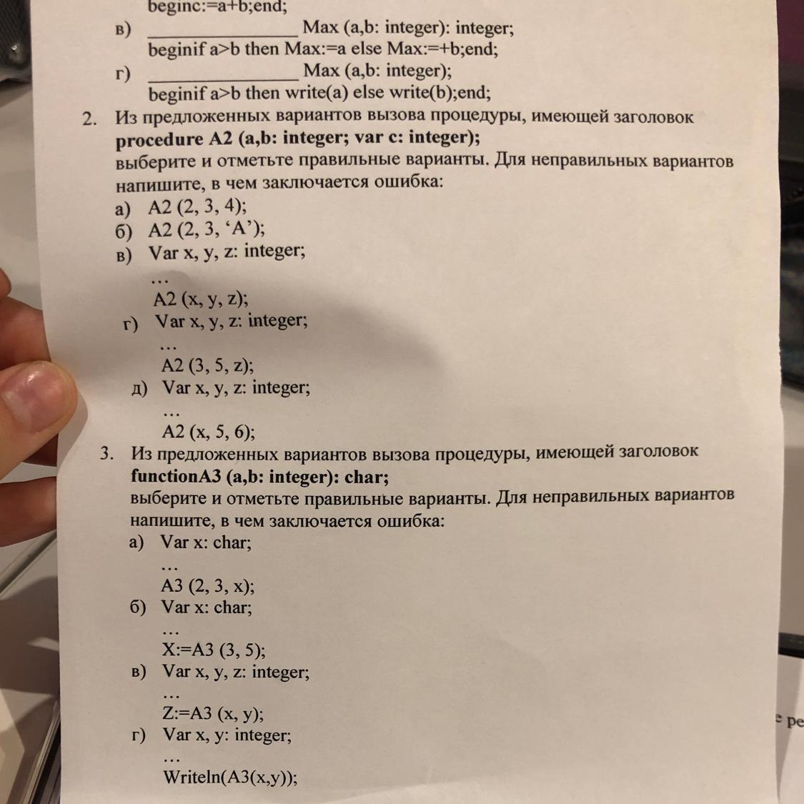 A) неправильно, так как 3 параметр (c) требует переменной (var c: integer), а дана константа (4).