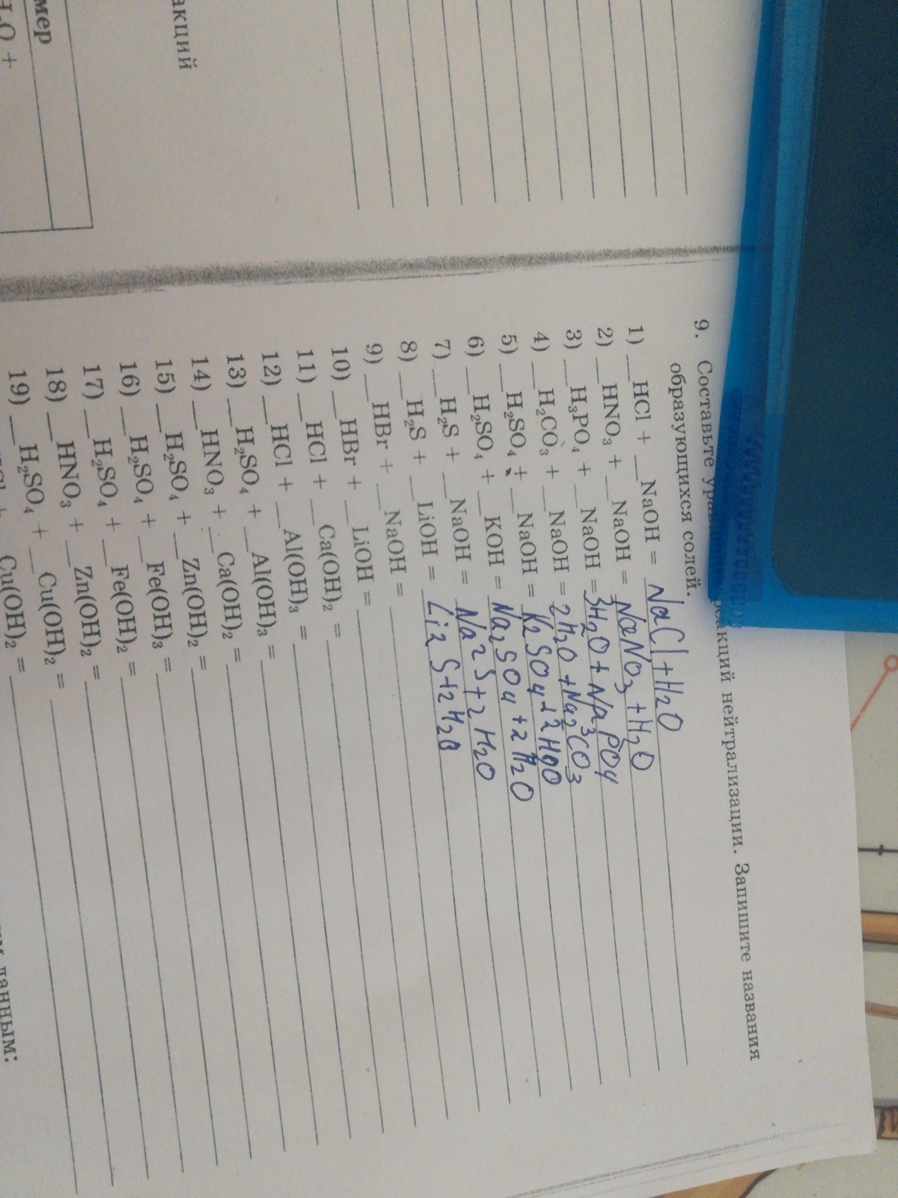 1) HCl + NaOH = NaCl + H2O (хлорид натрия)