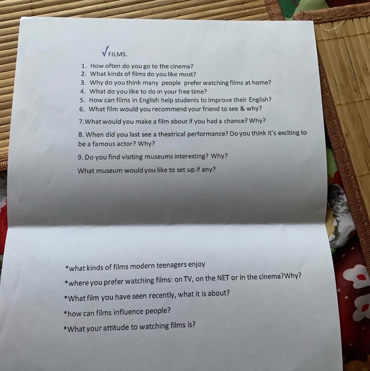 9. I guess visiting museums is interesting because I can get to know about many aspects of human activities.