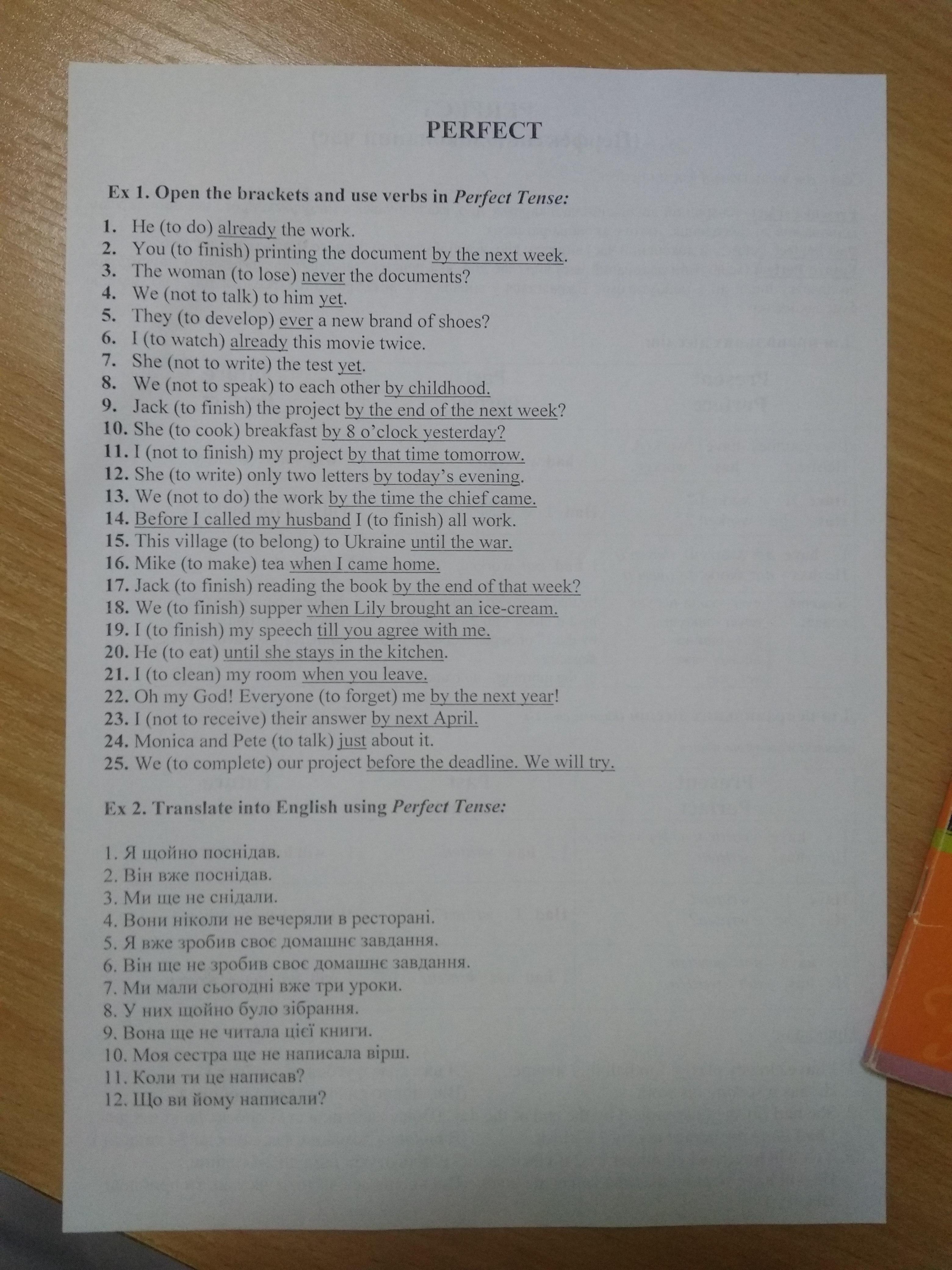 11. I WON'T HAVE FINISHED my project by that time tomorrow.