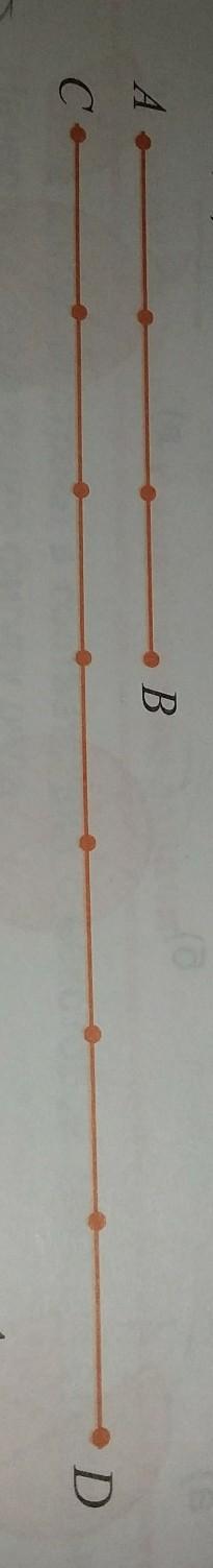 762. Определите по рисунку, какую часть отрезка: а) AB составляет отрезок CD; б) CD составляет отрезок AB.