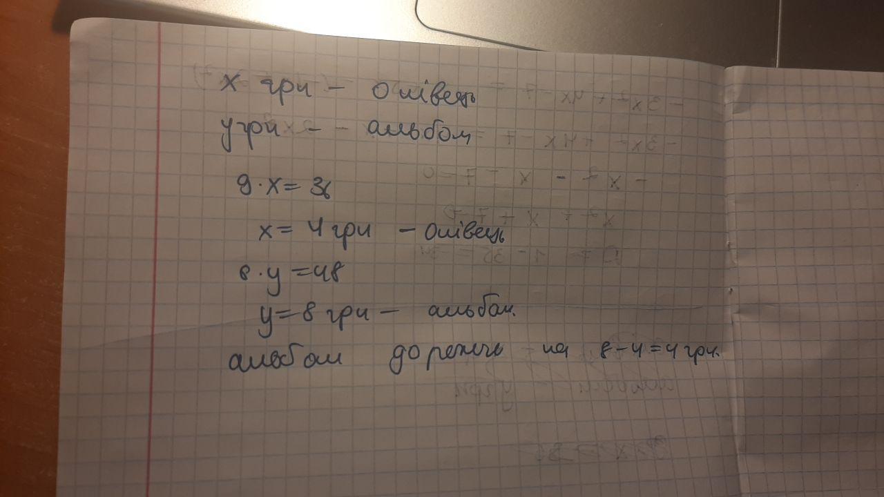 вих альбомів вартістю 48 грн. Що дорожче: олівець чи альбом —