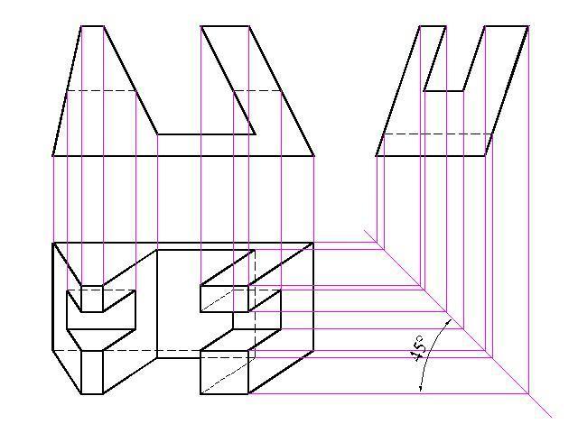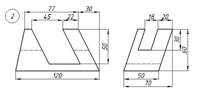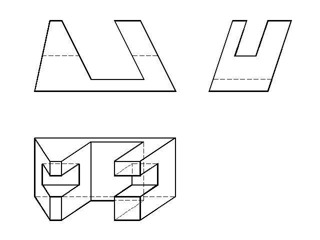 Помогите, пожалуйста! Нужно построить вид детали сверху по двум другим видам( спереди и сбоку)