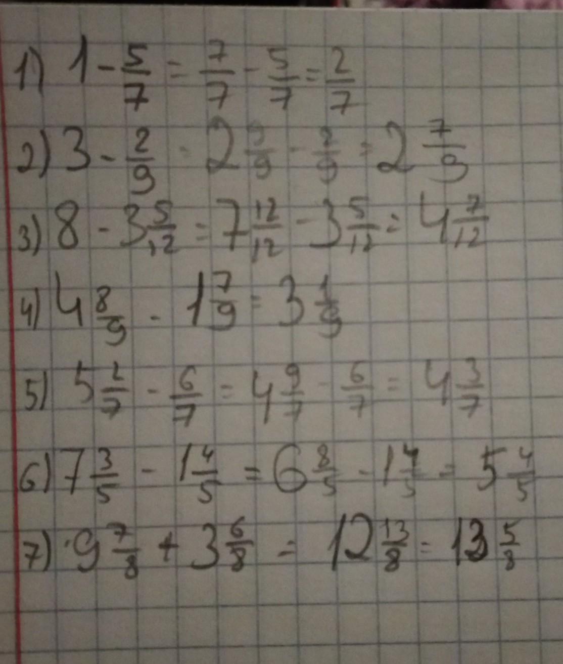 5) 5,2/7-6/7=4,9/7-6/7=4,3/7;