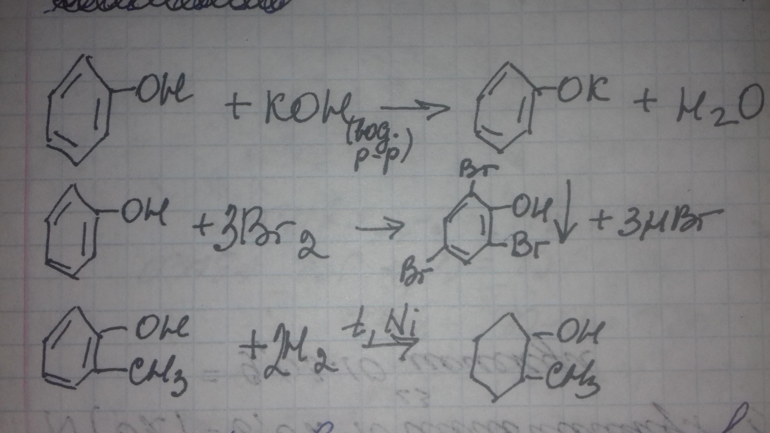 а) фенола с гидроксидом калия