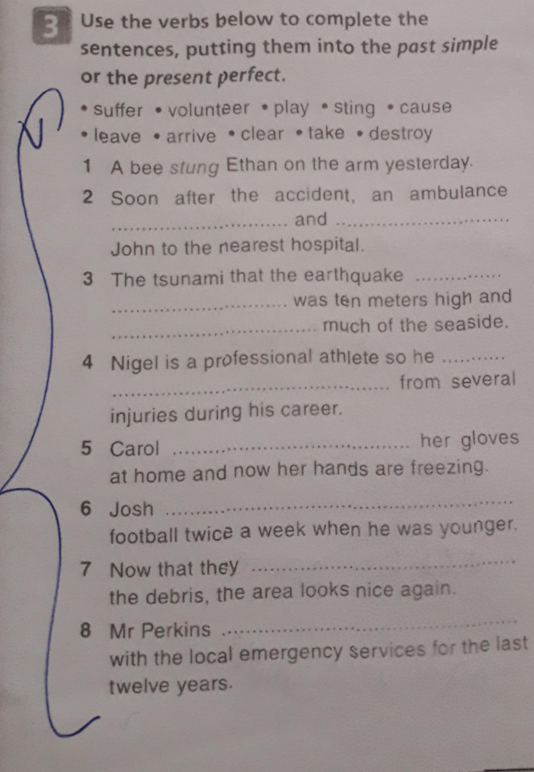 8) Mr Perkins HAVE BEEN VOLUNTEERING with the local emergency services for the last twelve years.