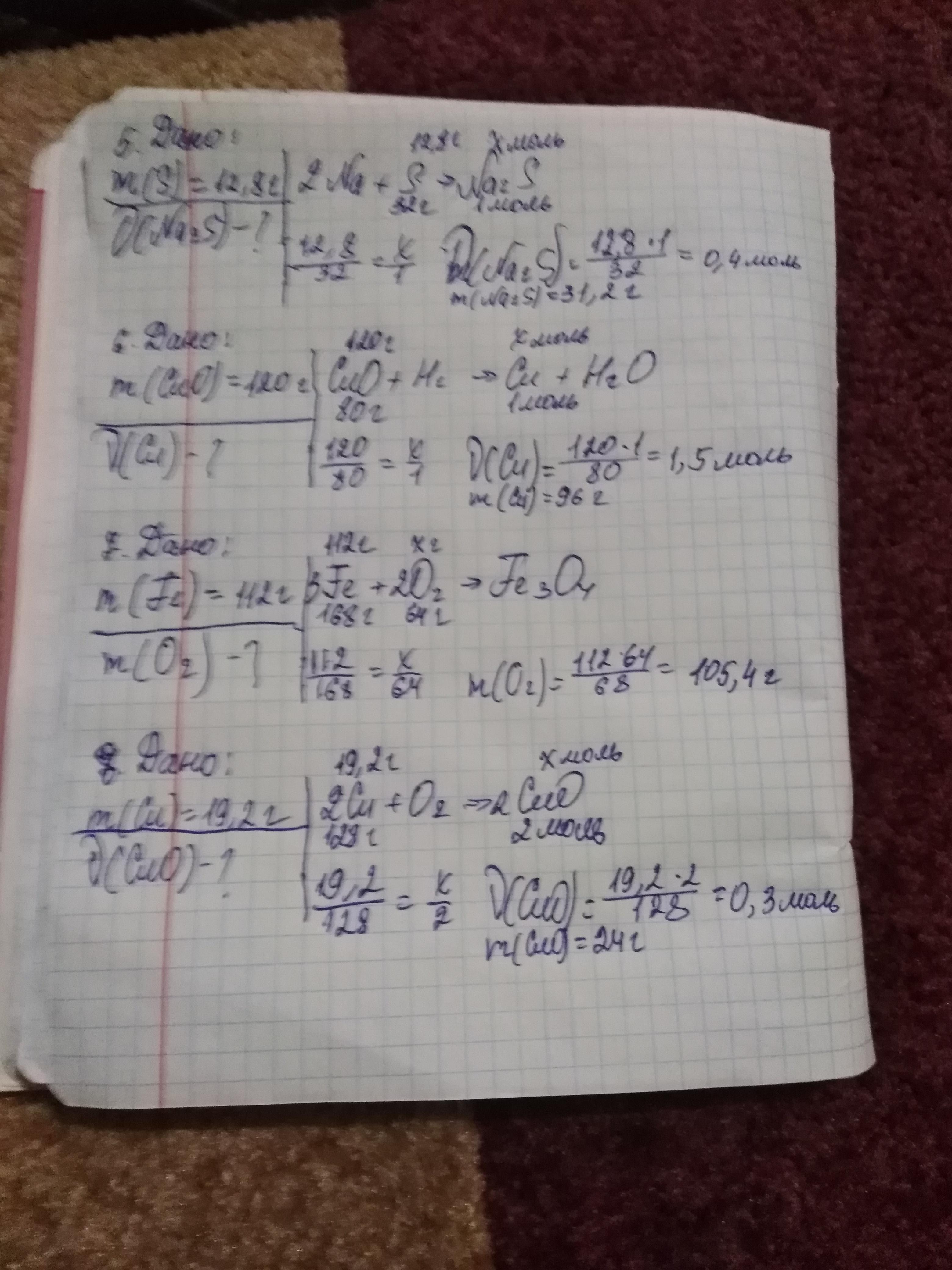 6. Вычислите количество вещества образующейся меди, если в реакцию с водородом вступает оксид меди (II) массой 120 г (CuO + H2 = Cu + H2O).