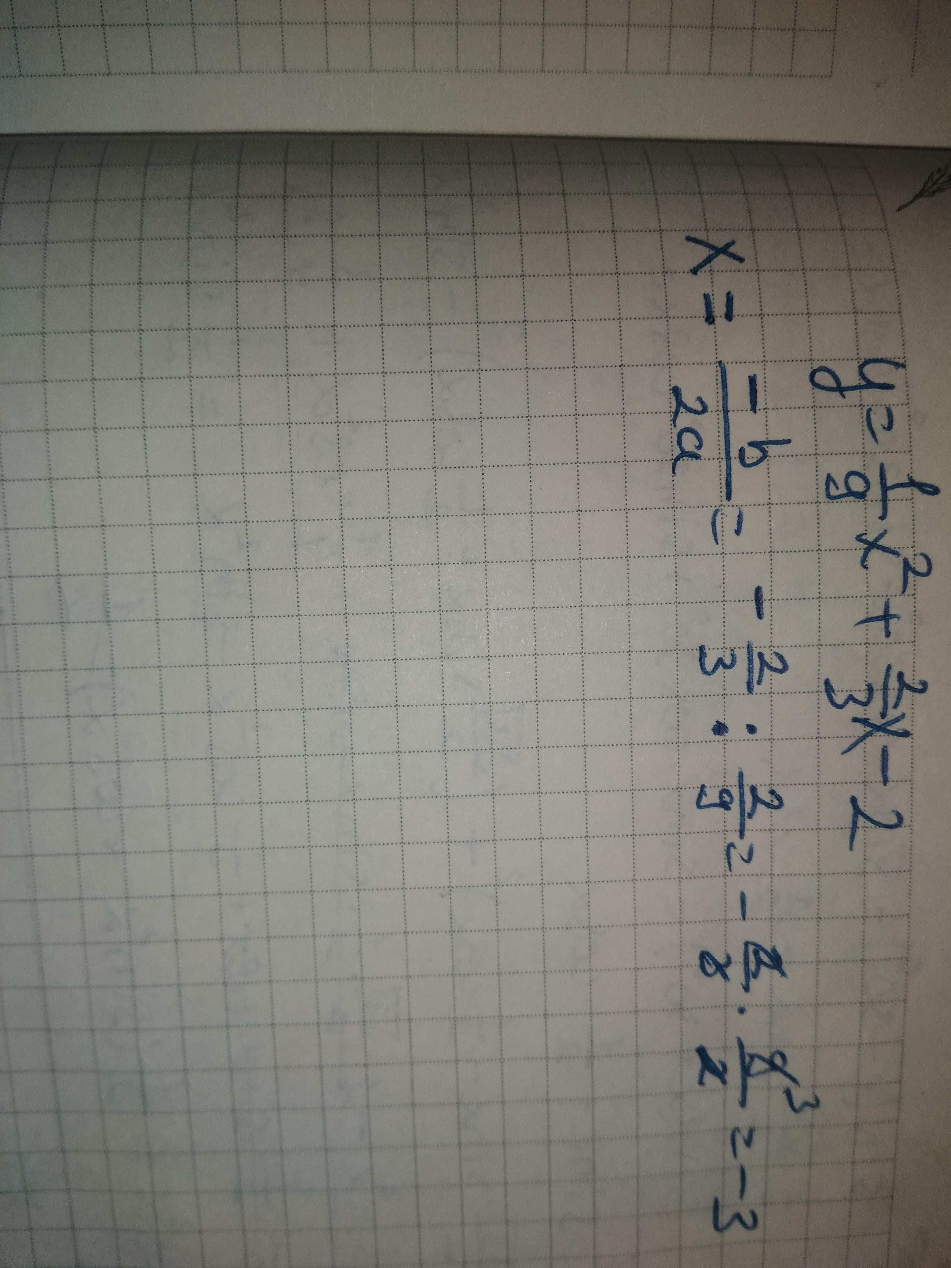 Известно, что если х=0, то график имеет пересечение с осью У. И это точка с коорд. (0;-2), значение у=-2. Заметим что у=-2, если х =-6, точка (-6;-2). Таким образом ось параболы расположена на одинаковом расстоянии от х=0 и х=-6, является средней точкой, следовательно проходит через х=-3.