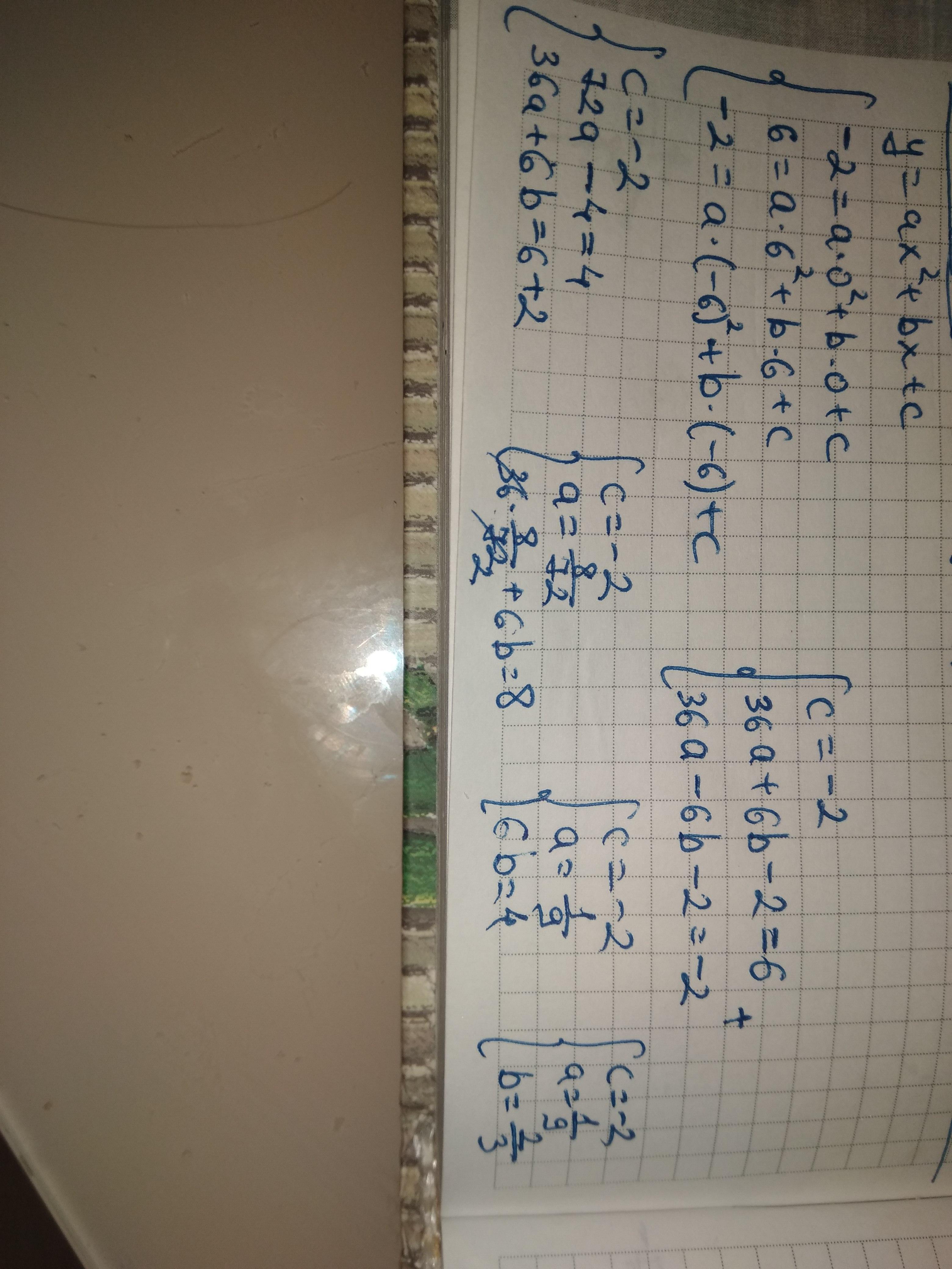 проходит через точки c координатами (0;−2), (6;6), (−6;−2).