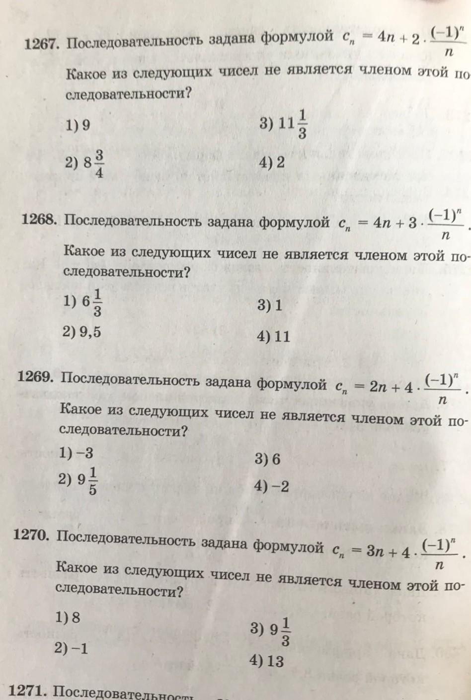 3); ; c_{n}=2n+(-1)^{n}cdot frac{4}{n}; ; ,; ; nin N\\c_1=2-4=-2; ; ,; ; c_2=4+2=6; ; ,; ; c_3=6-frac{4}{3}=4frac{2}{3}; ,\\c_4=8+1=9; ; ,; ; c_5=10-frac{4}{5}=9frac{1}{5}; ; Rightarrow ; ; -3notin {c_{n}}\\\4); ; c_{n}=3n+(-1)^{n}cdot frac{4}{n}; ; ,; ; nin N\\c_1=3-4=-1; ; ,; ; c_2=6+2=8; ; ,; ; c_3=9-frac{4}{3}=7frac{2}{3}; ,\\c_4=12+1=13; ; ,; ; c_5=15-frac{4}{5}=14frac{1}{5}; ; Rightarrow ; ; ; ; 9frac{1}{3}notin {c_{n}}