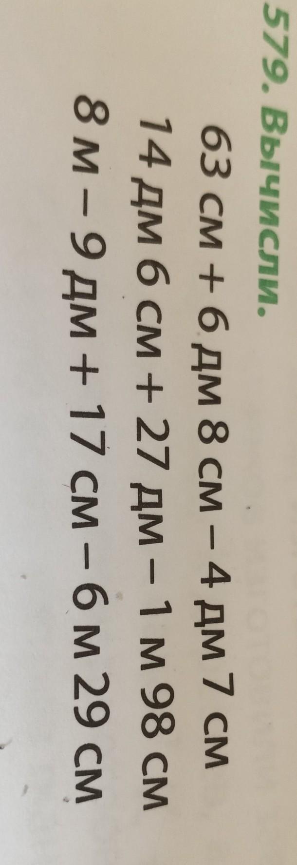 Вычисли 63 см + 6 дм 8 см - 41 м 7 см 14 см 6 см + 37 дм - 1 м 98 см 8 м - 9 дм + 17 см - 6 м 29 см