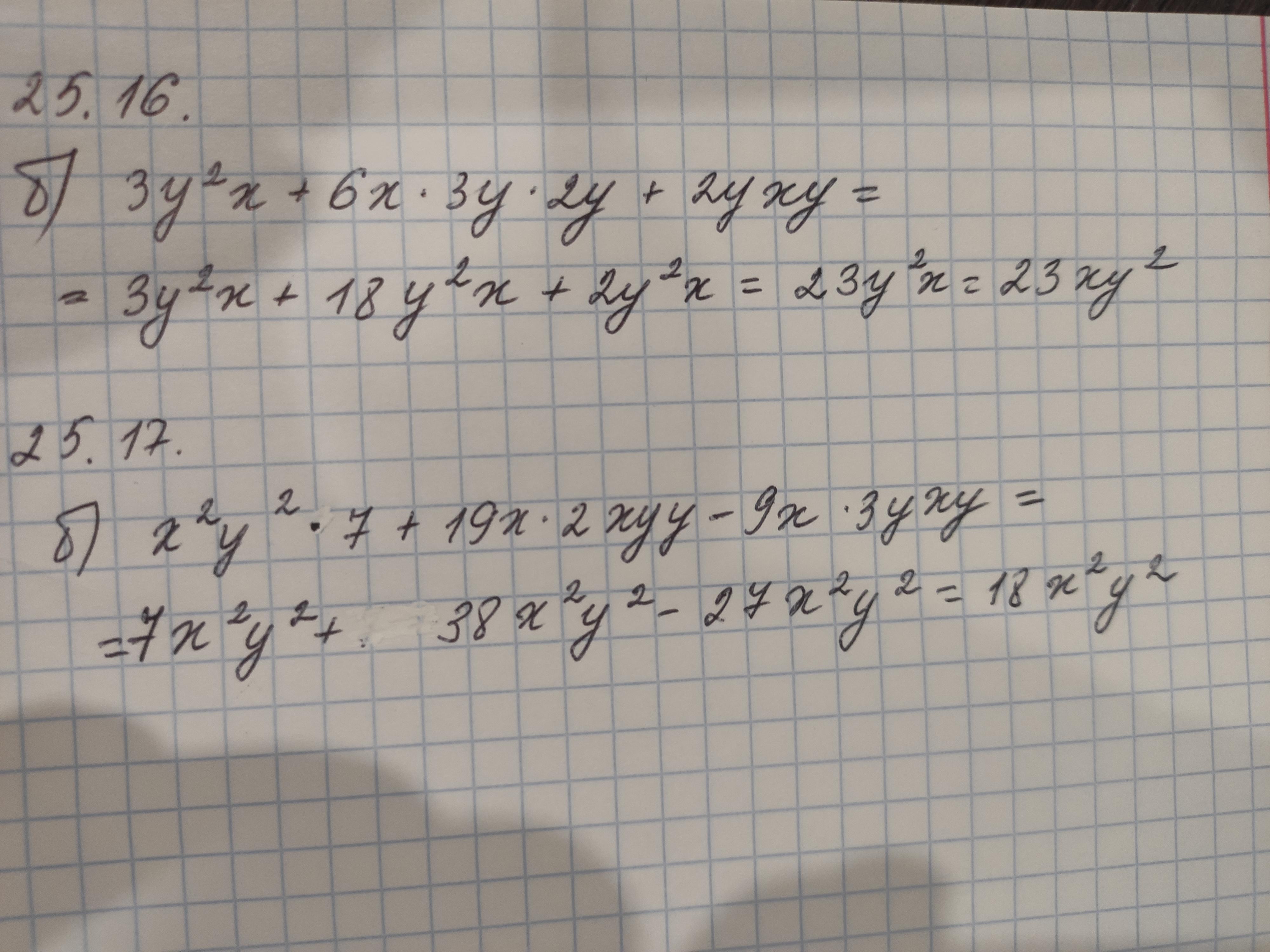 б)х²у²*7+19х*2хуу-9х*3уху=7х²у²+38х²у² -27х²у²=18х²у²