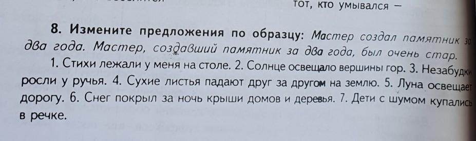 Стихи, лежавшие у меня на столе, у меня в руках. Солнце, которое освещало вершины гор, ушло за закат. Незабудки, которые росли у ручья, начинают цвести. Сухие листья, падающие друг за другом на землю, упали. Луна, которая освещала дорогу, поменялась с солнцем.