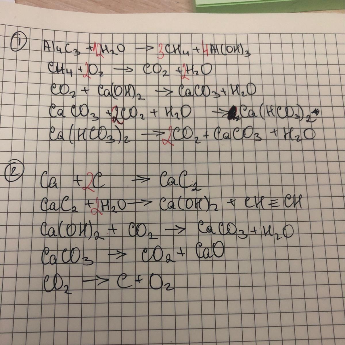 1) Al 4 C 3→ CH 4→ CO 2→ CaCO 3→ Ca ( HCO 3)2→ CaCO 3