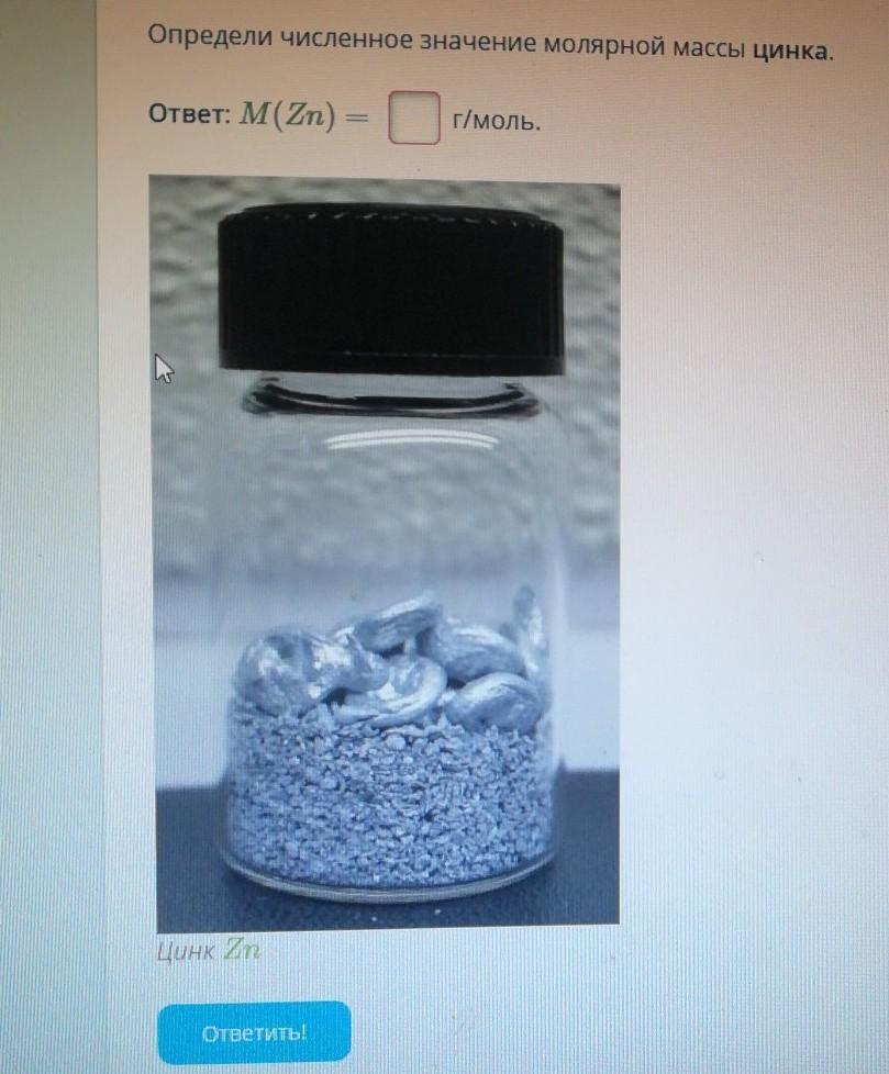 молярная масса определяется по таблице Менделеева то есть молярная масса цинка равна 65