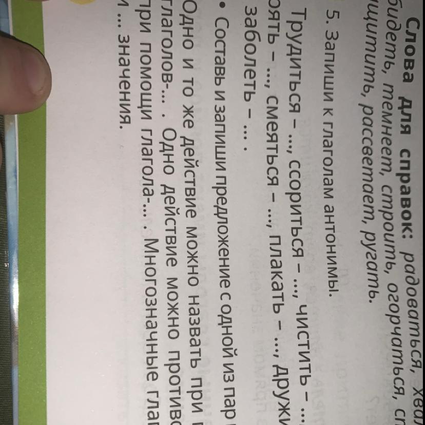 Одно и то же действие можно назвать при помощи глаголов-синонимов. Одно действие можно противопоставить другому при помощи глагола-антонима. Многозначные глаголы имеют различные значения.