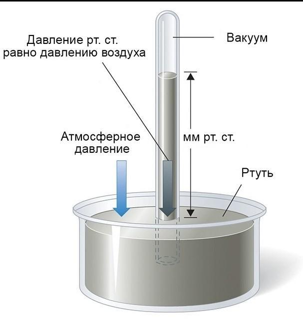 Высота ртутного столба трубки показывает величину давления воздуха. Ее точную величину в миллиметрах (мм) определяют по шкале с делениями, закрепленной на трубке.