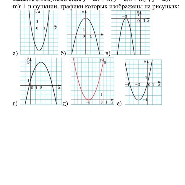 Задайте формулами вида y = ax2 + n, y = a(x + m)2 , y = a(x + m)2 + n функции, графики которых изображены на рисунках: