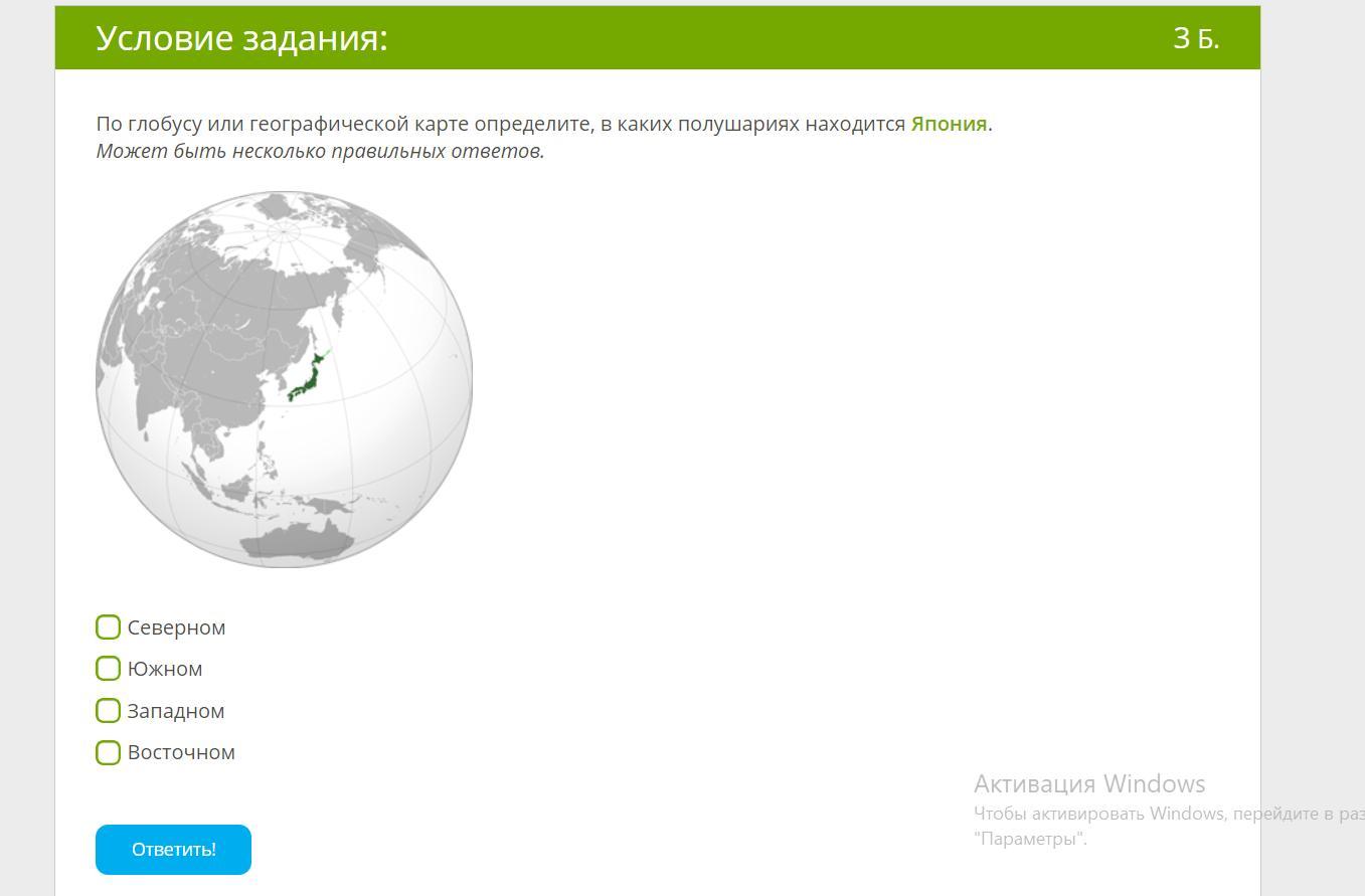 По глобусу или географической карте определите, в каких полушариях находится Япония.