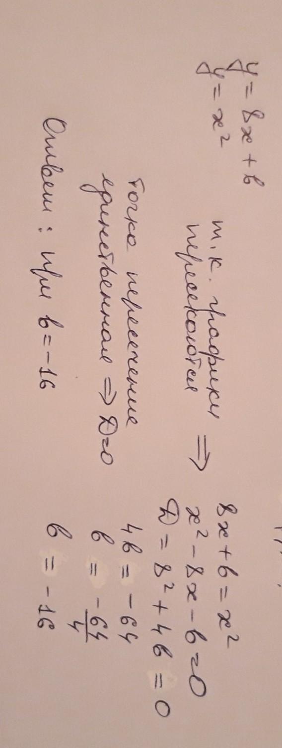 При каком значение параметра b графики функций y=8x+b и y=x² пересекаются в точке, принадлежащей оси координат?
